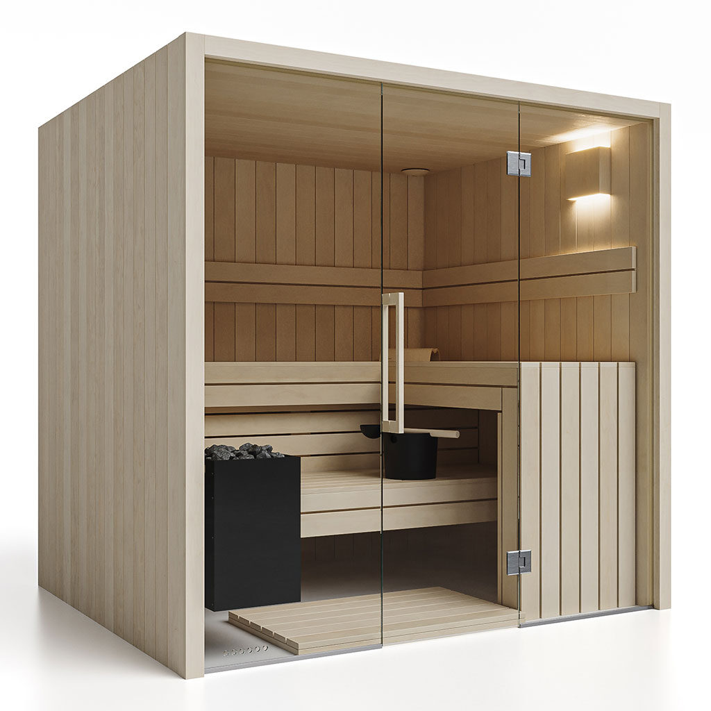 Align blends style, comfort, and practicality with a contemporary design. The Align collection is thoughtfully designed to inspire and elevate. Featuring solid aspen cladding inside and out, it offers a classic aesthetic with full-depth benches and a sleek, all-glass front. The minimalist sconce provides subtle, indirect lighting, creating a serene atmosphere without distractions.